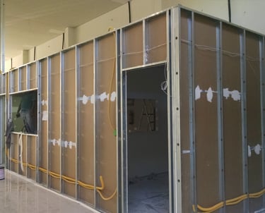 Divisórias práticas e modernas em drywall, otimizando espaços com estilo e eficiência.